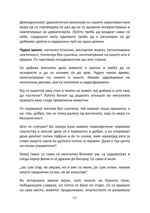 Чудно време, нагласен егоизам, распарчен морал, легализирана