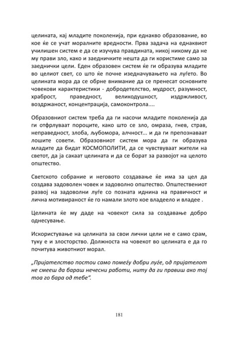 светот, да ја сакаат целината и да се борат за развојот на целото