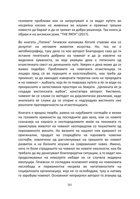 Во книгата „Патека“ Гичевски изложува богати ставови кои се