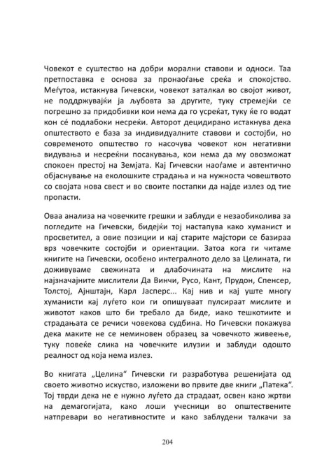 Во книгата „Целина“ Гичевски ги разработува решенијата од