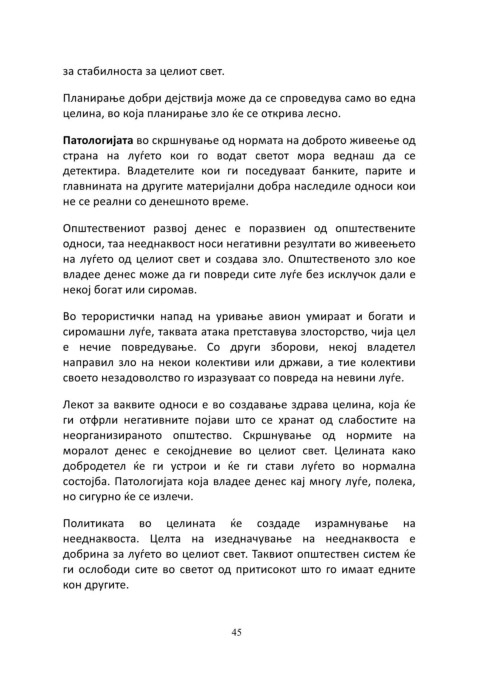 добрина за луѓето во целиот свет. Таквиот општествен систем ќе