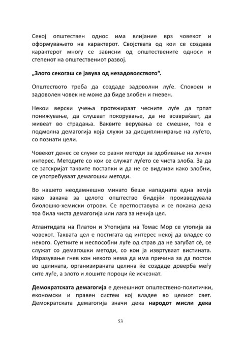 Општеството треба да создаде задоволни луѓе. Спокоен и