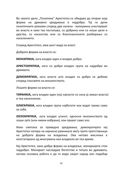 Во своето дело „Политика“ Аристотел се обидува да открие која