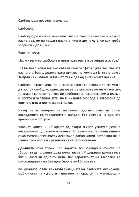 тој живее со другите луѓе. Во слободна и независна земја имаме