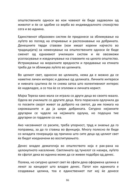 животот и ќе се здобие со верба во индивидуалното спокојство