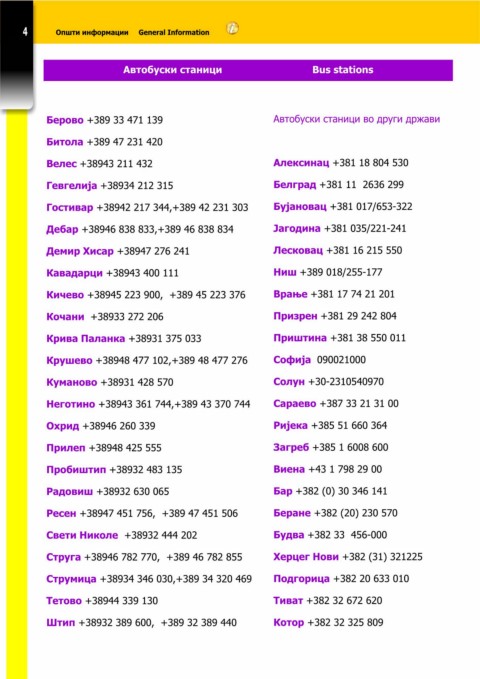 Штип +38932 389 600, +389 32 389 440 Котор +382 32 325 809