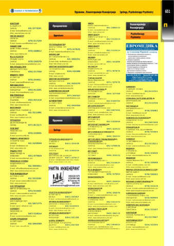 650 Производство, Профили, Проценители Production, Profiles, Аppraisers Пружини , Психотерапија-Психијатрија Springs, Psychoterapy-Psychiatry 651