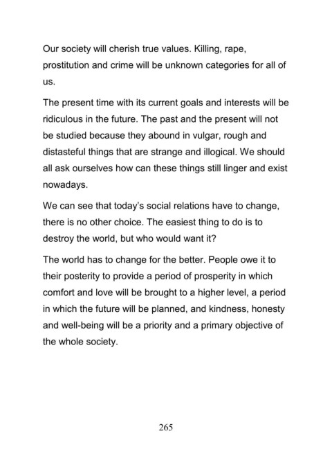 Our society will cherish true values. Killing, rape,