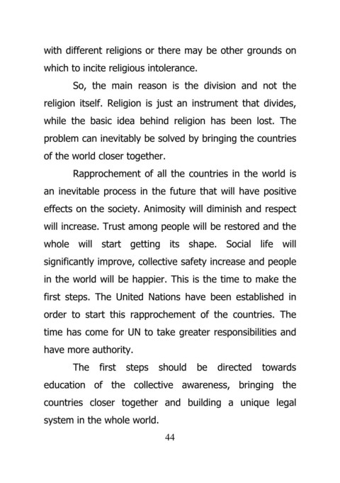 Rapprochement of all the countries in the world is