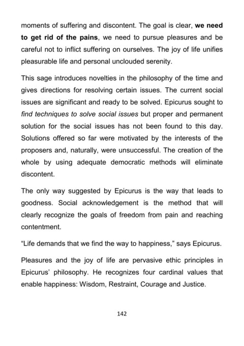 Epicurus’ philosophy. He recognizes four cardinal values that