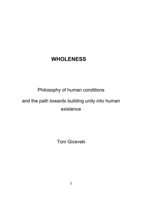 WHOLENESS Philosophy of human conditions and the path towards building unity into human existence Toni Gicevski 1