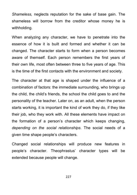 people’s character. Theophrastus’ character types will be