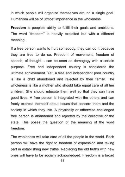 good lives. A free person is integrated with the others and can