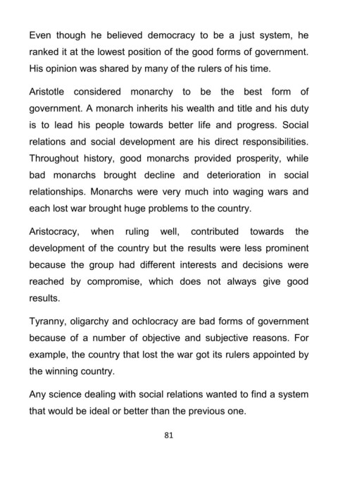 Aristotle considered monarchy to be the best form of