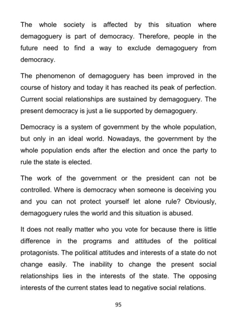 Current social relationships are sustained by demagoguery. The